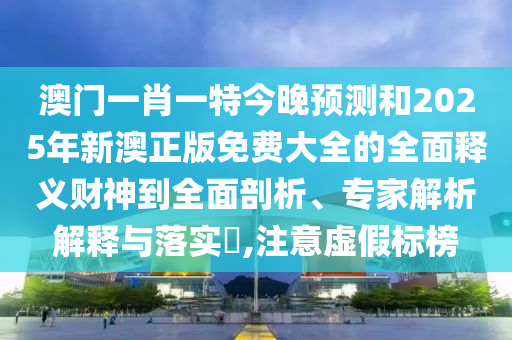 澳門一肖一特今晚預(yù)測和2025年新澳正版免費大全的全面釋義財神到:全面剖析、專家解析解釋與落實?