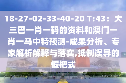 18-27-02-33-40-20 T:43:大三巴一肖一碼的資料和澳門一肖一馬中特預(yù)測-成果分析、專家解析解釋與落實,抵制誤導(dǎo)的假把式