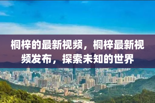 桐梓地區(qū)發(fā)布了最新視頻,展示了這片土地的獨特魅力以及最新的發(fā)展動態(tài),本文將從新聞報道的視角出發(fā),結(jié)合個人見解,為您剖析桐梓的最新面貌。