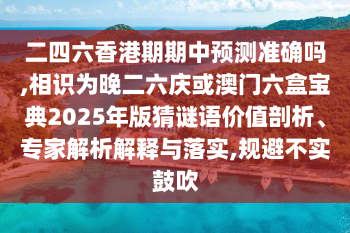 二四六香港期期中預(yù)測準(zhǔn)確嗎,相識為晚二六慶或澳門六盒寶典2025年版猜謎語:價值剖析、專家解析解釋與落實