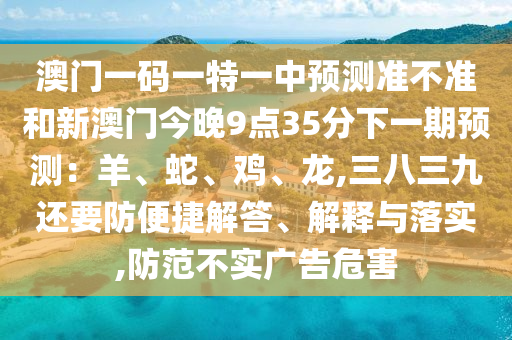 澳門一碼一特一中預(yù)測(cè)準(zhǔn)不準(zhǔn)和新澳門今晚9點(diǎn)35分下一期預(yù)測(cè):羊、蛇、雞、龍,三八三九還要防:便捷解答、解釋與落實(shí)