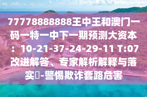 77778888888王中王和澳門一碼一特一中下一期預(yù)測(cè)大資本:10-21-37-24-29-11 T:07改進(jìn)解答、專家解析解釋與落實(shí)?-警惕欺詐套路危害