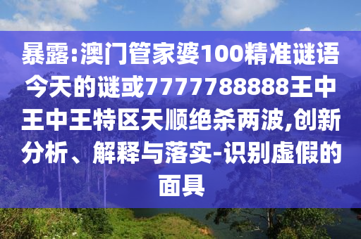 澳門管家婆100精準謎語今天的謎或7777788888王中王中王特區(qū)天順絕殺兩波創(chuàng)新”的分析、解釋與落實,以及識別虛假宣傳的內(nèi)容如下: