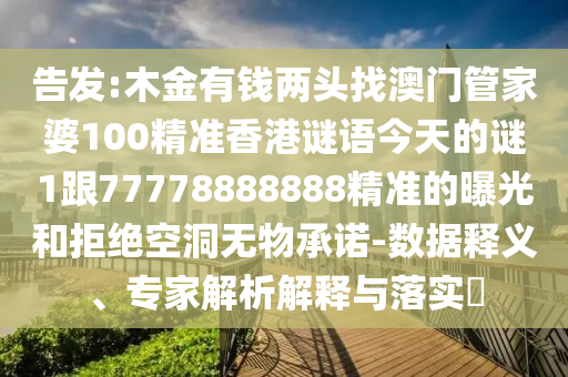 關(guān)于關(guān)鍵詞“告發(fā):木金有錢兩頭找澳門管家婆”,這是一個(gè)涉及多個(gè)方面的話題,需要從全面釋義、專家解讀與落實(shí)、警惕虛假宣傳等方面進(jìn)行深入解析,以下是對(duì)該話題的詳細(xì)分析: