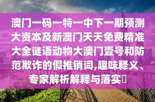 澳門一碼一特一中下一期預(yù)測大資本及新澳門天天免費精準大全謎語動物大澳門壹號和防范欺詐的假推銷詞,趣味釋義、專家解析解釋與落實?