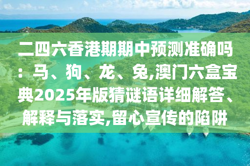 二四六香港期期中預測準確嗎:馬、狗、龍、兔,澳門六盒寶典2025年版猜謎語詳細解答、解釋與落實,留心宣傳的陷阱