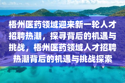 梧州醫(yī)藥領(lǐng)域迎來新一輪人才招聘熱潮,探尋背后的機遇與挑戰(zhàn),梧州醫(yī)藥領(lǐng)域人才招聘熱潮背后的機遇與挑戰(zhàn)探索