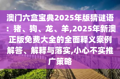 澳門六盒寶典2025年版猜謎語(yǔ):豬、狗、龍、羊,2025年新澳正版免費(fèi)大全的全面釋義案例解答、解釋與落實(shí),小心不實(shí)推廣策略