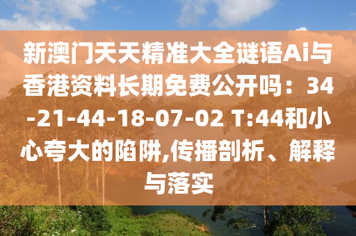 新澳門天天精準(zhǔn)大全謎語Ai與香港資料長(zhǎng)期免費(fèi)公開嗎:34-21-44-18-07-02 T:44和小心夸大的陷阱,傳播剖析、解釋與落實(shí)