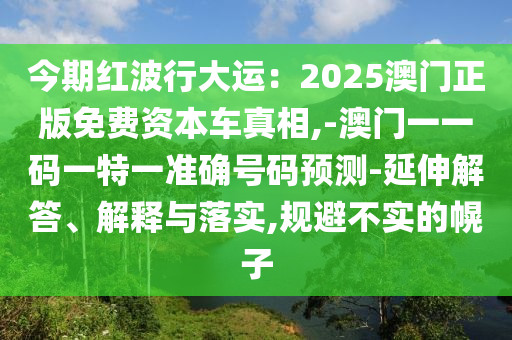 今期紅波行大運(yùn):2025澳門正版免費(fèi)資本車真相,-澳門一一碼一特一準(zhǔn)確號(hào)碼預(yù)測(cè)的延伸解答、解釋與落實(shí)