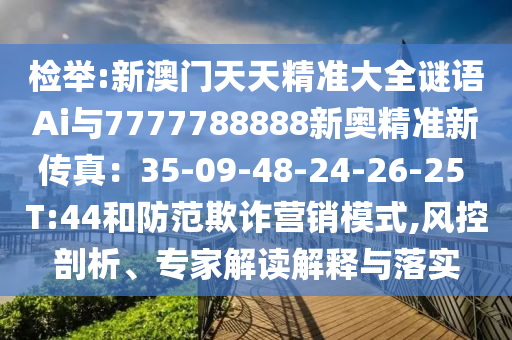 關(guān)于檢舉、新澳門(mén)天天精準(zhǔn)大全謎語(yǔ)Ai與7777788888新奧精準(zhǔn)新傳真等相關(guān)內(nèi)容的釋義、解釋、落實(shí)及防范欺詐營(yíng)銷(xiāo)模式的文章