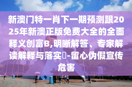 關(guān)于新澳門特一肖下一期預測、2025年新澳正版免費大全的全面釋義創(chuàng)富及防范虛假宣傳危害的明晰解答與專家解讀