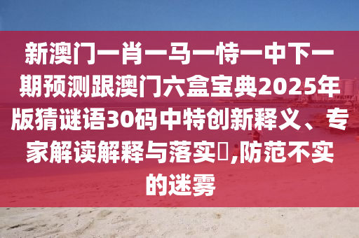 新澳門一肖一馬一恃一中下一期預測跟澳門六盒寶典2025年版猜謎語30碼中特:創(chuàng)新釋義、專家解讀解釋與落實?