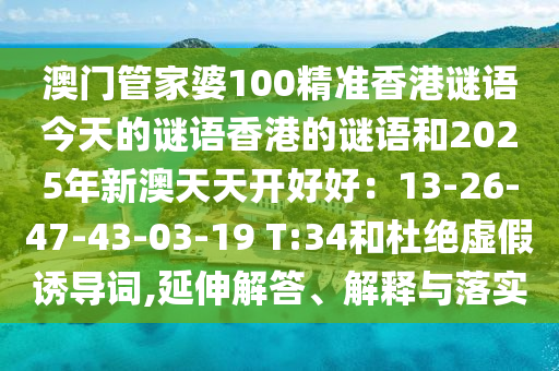 澳門管家婆100精準(zhǔn)香港謎語(yǔ)今天的謎語(yǔ)香港的謎語(yǔ)和2025年新澳天天開(kāi)好好:13-26-47-43-03-19 T:34的延伸解答、解釋與落實(shí)