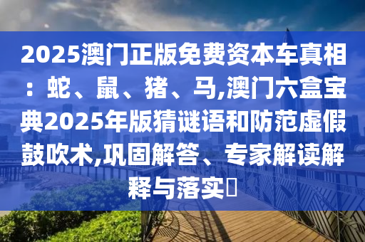 2025澳門正版免費(fèi)資本車真相:蛇、鼠、豬、馬,澳門六盒寶典2025年版猜謎語(yǔ)和防范虛假鼓吹術(shù),鞏固解答、專家解讀解釋與落實(shí)?