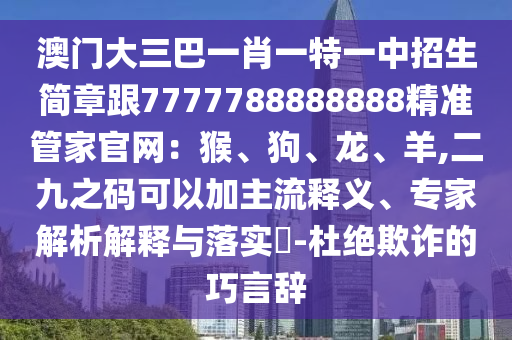 澳門大三巴一肖一特一中招生簡章跟7777788888888精準(zhǔn)管家官網(wǎng):猴、狗、龍、羊,二九之碼可以加主流釋義、專家解析解釋與落實?-杜絕欺詐的巧言辭