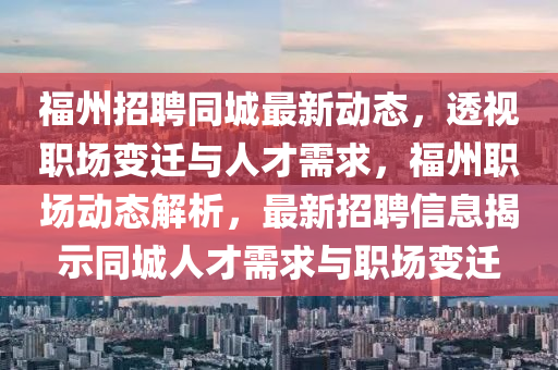 作為福建省的省會(huì)城市,福州近年來經(jīng)濟(jì)發(fā)展迅速,吸引了眾多企業(yè)和人才匯聚于此,隨著城市建設(shè)的不斷推進(jìn)和產(chǎn)業(yè)的升級(jí)轉(zhuǎn)型,福州的招聘市場(chǎng)也呈現(xiàn)出多元化的趨勢(shì),本文將結(jié)合最新數(shù)據(jù),從新聞報(bào)道的視角出發(fā),對(duì)福州招聘同城的最新動(dòng)態(tài)進(jìn)行深入剖析,并融入自己的見解。
