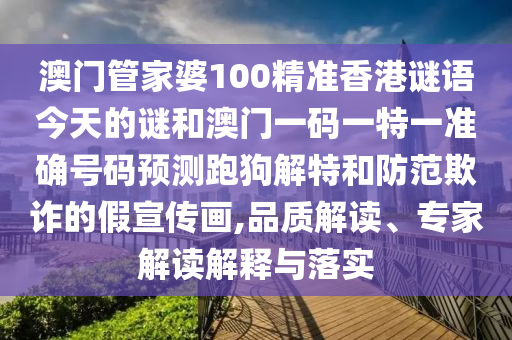 澳門管家婆100精準(zhǔn)香港謎語今天的謎和澳門一碼一特一準(zhǔn)確號(hào)碼預(yù)測跑狗解特:品質(zhì)解讀、專家解讀解釋與落實(shí)