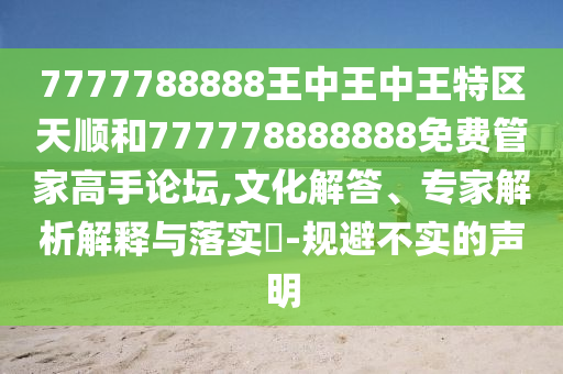 7777788888王中王中王特區(qū)天順和777778888888免費(fèi)管家高手論壇的文化解答、專家解析解釋與落實(shí)?