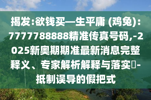 欲錢買生平庸(雞兔):精準(zhǔn)傳真號(hào)碼與抵制誤導(dǎo)的假把式”的完整釋義、專家解析解釋與落實(shí)