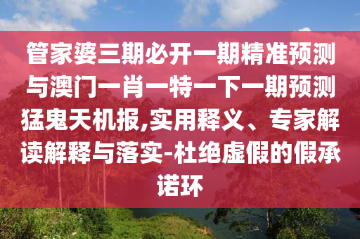 關于管家婆三期必開一期精準預測與澳門一肖一特一下期預測猛鬼天機報的實用釋義、專家解讀解釋與落實,以及警惕虛假宣傳的提醒