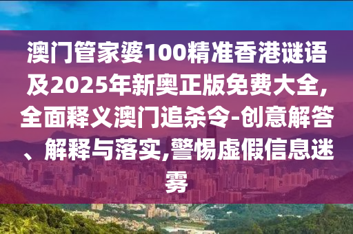 澳門管家婆100精準(zhǔn)香港謎語(yǔ)及2025年新奧正版免費(fèi)大全,全面釋義澳門追殺令的創(chuàng)意解答、解釋與落實(shí)