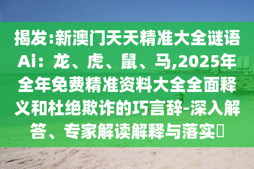 揭發(fā):新澳門天天精準(zhǔn)大全謎語Ai:龍、虎、鼠、馬,2025年全年免費精準(zhǔn)資料大全全面釋義和杜絕欺詐的巧言辭-深入解答、專家解讀解釋與落實?