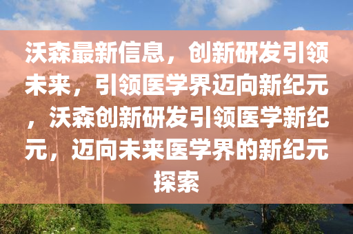 隨著科技的不斷進(jìn)步,生物醫(yī)藥領(lǐng)域日新月異,沃森生物作為業(yè)界的佼佼者,一直在引領(lǐng)著行業(yè)發(fā)展的步伐,本文將結(jié)合最新的信息,從新聞報(bào)道的視角出發(fā),探討沃森生物的最新動(dòng)態(tài)及其對(duì)未來(lái)發(fā)展的展望。