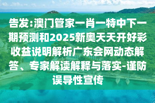 近年來,隨著網(wǎng)絡(luò)信息的迅速發(fā)展,各種預(yù)測和游戲活動也愈發(fā)活躍,在這樣的背景下,我們也必須警惕虛假宣傳和誤導(dǎo)性信息,本文將就“告發(fā):澳門管家一肖一特中下一期預(yù)測”和“2025新奧天天開好彩收益說明”等關(guān)鍵詞進(jìn)行解釋與落實,并特別提醒公眾注意防范誤導(dǎo)性宣傳。