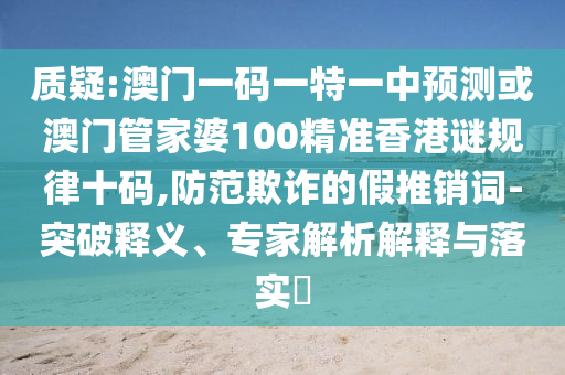 我們需要對(duì)關(guān)鍵詞進(jìn)行逐一解析?!百|(zhì)疑”意味著對(duì)某種說法或預(yù)測(cè)持有疑慮,不輕易相信的態(tài)度,而關(guān)于“澳門一碼一特一中預(yù)測(cè)”或“澳門管家婆100精準(zhǔn)香港謎規(guī)律十碼”,這些詞匯似乎與游戲預(yù)測(cè)、號(hào)碼分析有關(guān)。