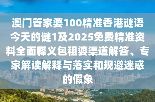 澳門管家婆100精準(zhǔn)香港謎語今天的謎1及2025免費精準(zhǔn)資料全面釋義包租婆的渠道解答、專家解讀解釋與落實