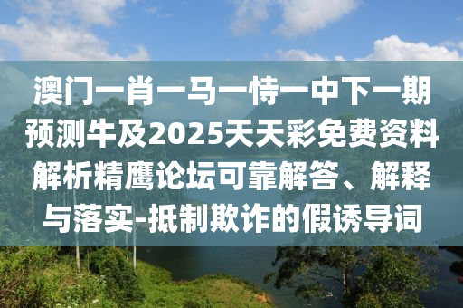 澳門一肖一馬一恃一中下一期預測牛及2025天天彩免費資料解析精鷹論壇可靠解答、解釋與落實-抵制欺詐的假誘導詞
