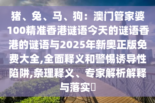 豬、兔、馬、狗:澳門管家婆100精準(zhǔn)香港謎語今天的謎語香港的謎語與2025年新奧正版免費(fèi)大全,全面釋義:條理釋義、專家解析解釋與落實(shí)?