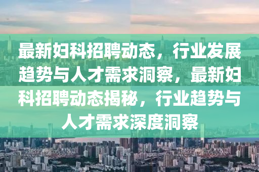 隨著醫(yī)療行業(yè)的快速發(fā)展,婦科領域的人才需求也日益增長,本文將結合最新婦科招聘信息,從新聞報道的視角出發(fā),探討當前行業(yè)發(fā)展趨勢與人才需求現(xiàn)狀,并闡述我的一些見解。