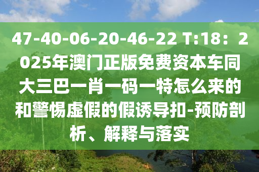 關(guān)于關(guān)鍵詞“以防:47-40-06-20-46-22 T:18”與“澳門正版免費(fèi)資本車同大三巴一肖一碼一特”的預(yù)防剖析、解釋與落實(shí),以及警惕虛假宣傳的解析如下。