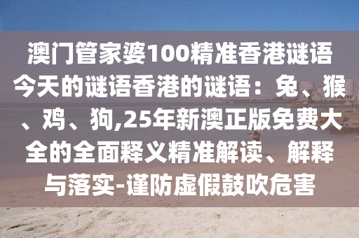 澳門管家婆100精準(zhǔn)香港謎語(yǔ)今天的謎語(yǔ)香港的謎語(yǔ):兔、猴、雞、狗,25年新澳正版免費(fèi)大全的全面釋義精準(zhǔn)解讀、解釋與落實(shí)-謹(jǐn)防虛假鼓吹危害
