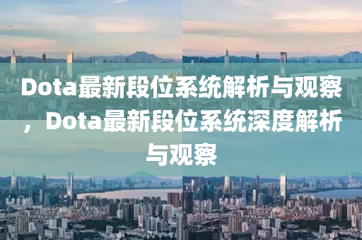 隨著游戲產(chǎn)業(yè)的快速發(fā)展,眾多電子競技游戲都在尋求創(chuàng)新與突破,在這其中,歷史悠久的競技游戲《Dota 2》一直在引領(lǐng)著MOBA游戲的潮流,Dota 2的段位系統(tǒng)迎來了全新的更新與調(diào)整,引發(fā)了廣大玩家的熱議,本文將從新聞報道的視角出發(fā),結(jié)合個人見解,對Dota的最新段位系統(tǒng)進(jìn)行深度解析。
