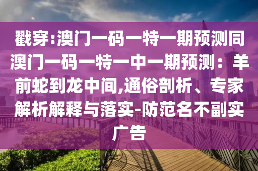 網(wǎng)絡上出現(xiàn)了許多關于澳門一碼一特一期預測的言論,其中部分涉及“羊前蛇到龍中間”等說法,我們也注意到一些名不副實的廣告存在虛假宣傳的現(xiàn)象,為了保障公眾的知情權,避免受到誤導和損失,本文將從通俗和專業(yè)的角度對關鍵詞進行釋義和解釋,并強調(diào)防范虛假宣傳的重要性。