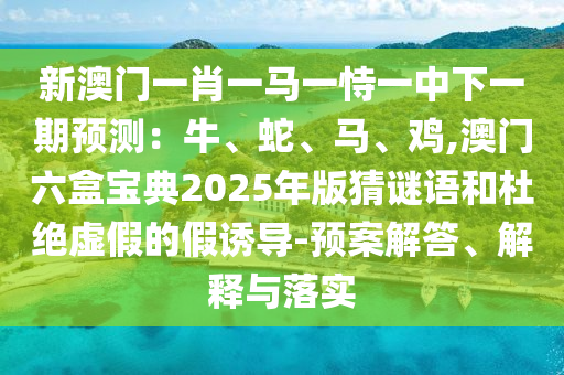 新澳門一肖一馬一恃一中下一期預(yù)測:牛、蛇、馬、雞,澳門六盒寶典2025年版猜謎語的預(yù)案解答、解釋與落實