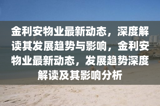 隨著城市建設(shè)的不斷推進(jìn),物業(yè)管理行業(yè)也在迅速發(fā)展,作為業(yè)內(nèi)頗具影響力的金利安物業(yè),其最新動(dòng)態(tài)備受關(guān)注,本文將從新聞報(bào)道的視角出發(fā),結(jié)合個(gè)人見解,對(duì)金利安物業(yè)的最新消息進(jìn)行深入剖析。