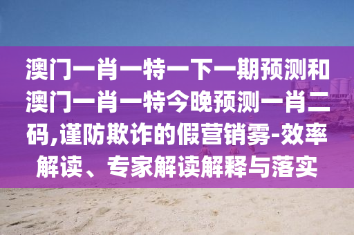 澳門一肖一特一下一期預測和澳門一肖一特今晚預測一肖二碼,謹防欺詐的假營銷霧-效率解讀、專家解讀解釋與落實