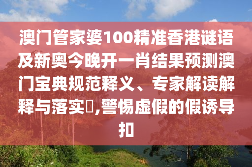 澳門管家婆100精準香港謎語及新奧今晚開一肖結果預測澳門寶典規(guī)范釋義、專家解讀解釋與落實?,警惕虛假的假誘導扣