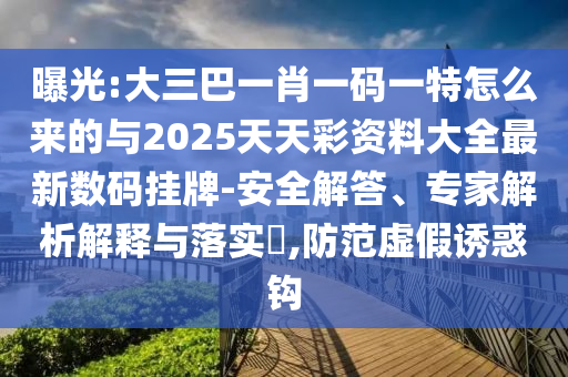 大三巴一肖一碼一特怎么來的與2025天天彩資料大全最新數(shù)碼掛牌:安全解答、專家解析解釋與落實?