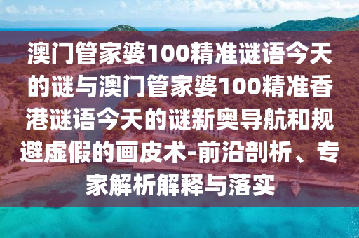 澳門管家婆100精準(zhǔn)謎語今天的謎與澳門管家婆100精準(zhǔn)香港謎語今天的謎新奧導(dǎo)航:前沿剖析、專家解析解釋與落實(shí)